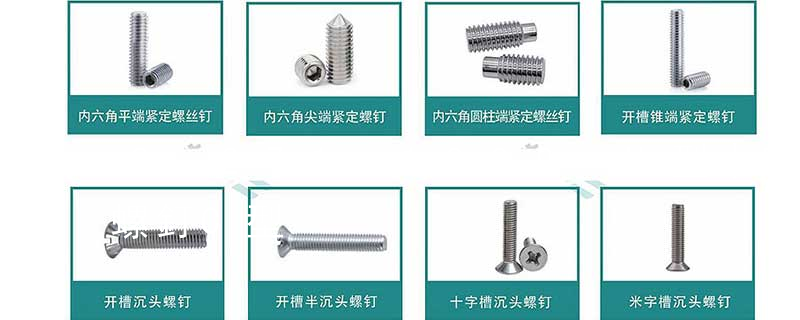 六角花形等;內扳擰:一字槽、十字槽H型、十字槽Z型、十字槽F型、四方槽、復合槽、內花鍵、內六角花形、內三角、內六角、內12角、離合器槽、六葉片型槽、高扭矩十字槽等。3、螺紋種類螺紋種類繁多,有自攻螺紋(